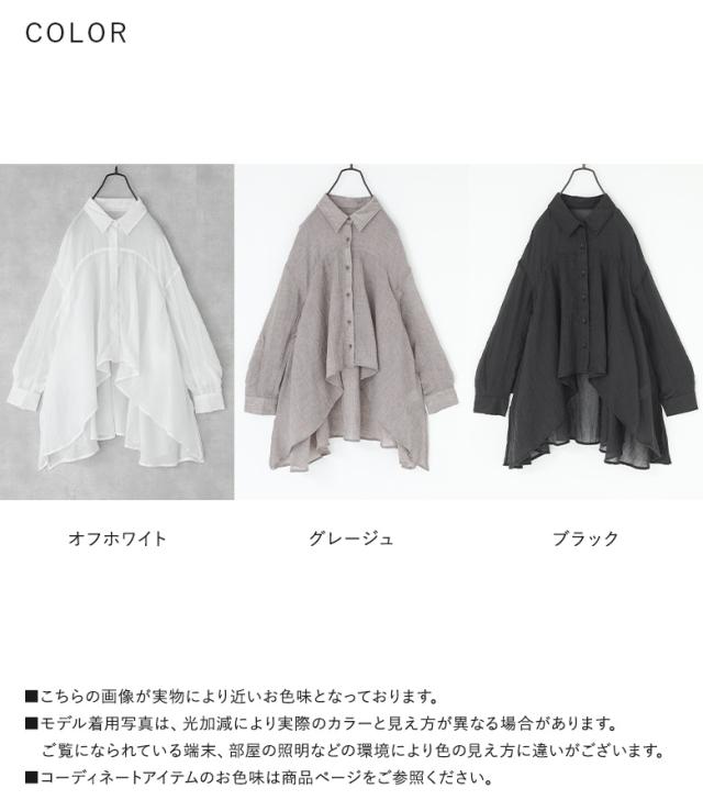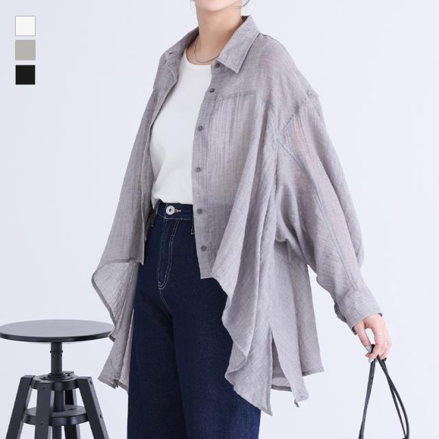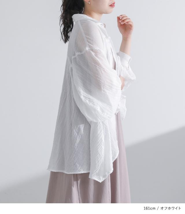 トップス レディース シャツ ブラウス 長袖 ガーゼ 薄手 パフスリーブ ヘムライン 羽織り 春 夏 オシャレウォーカー 【TP】 ボタンシャツ 前開きシャツ 襟付きシャツ 羽織 襟付き ホワイト 白 オフホワイト ぽわん袖 バルーンスリーブ バルーン袖 ボリューム袖 ミディ丈 ミドル丈 フレア スリット 後ろ下がり 無地 シースルー シアー 透け感 おうちで洗える 涼しい カジュアル レトロ クラシカル シンプル ナチュラル モード キレカジ フェミニン ガーリー 可愛い系 大人女子 大人可愛い お洒落可愛い 大人カジュアル オフィスカジュアル 上品 きれいめ ベーシック ニュアンス ラフ Sサイズ Mサイズ Lサイズ 10代 20代 30代 40代 50代 60代 低身長 高身長 女子会 オフィス 通勤 通学 お買い物 お出掛け 旅行 リゾート おしゃれ お洒落 トレンド 流行 osharewalker グレージュ ブラック 黒[ID]11tn0qe[フラッフィーガーゼシャツ]