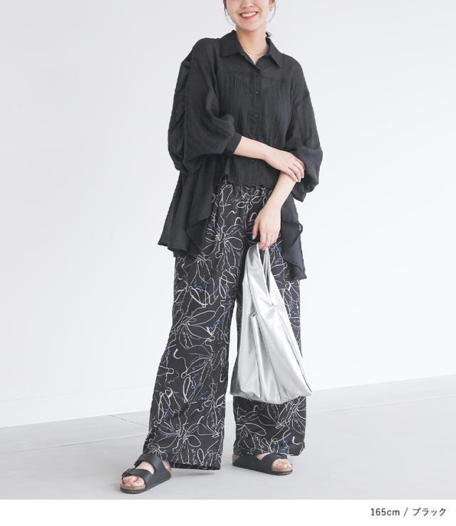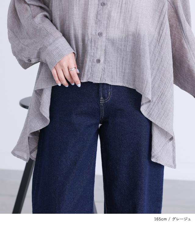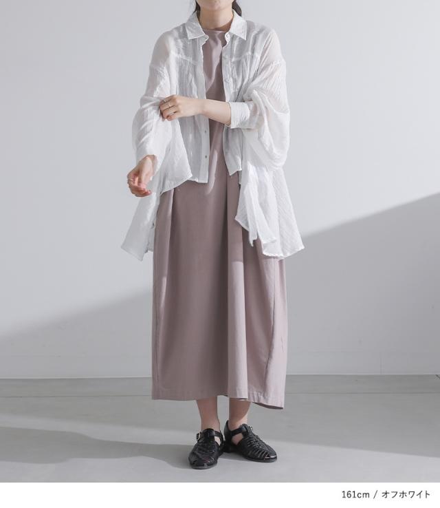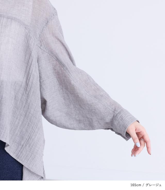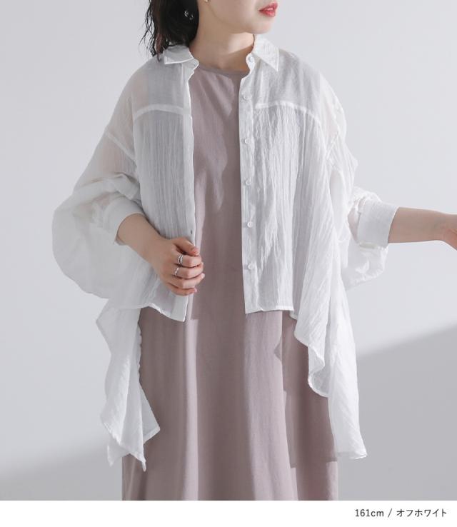 23日最大1200円クーポン 『フラッフィーガーゼシャツ』※メール便可※【10】[トップス レディース シャツ ブラウス 長袖 ガーゼ 薄手 パフスリーブ ヘムライン 羽織り 春 夏 オシャレウォーカー]