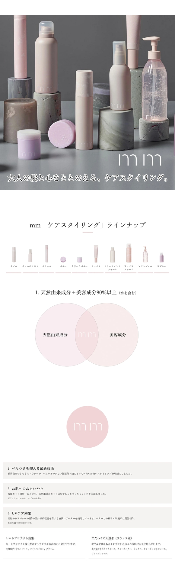 mm ミリ トリートメントフォーム 180g 正規品 即納 ニュアンス ニュアンス感 寝癖直し 寝グセ 乾いた髪 天然 スタイリング モルトベーネ ビューティーエクスペリエンス b-ex サロン専売品