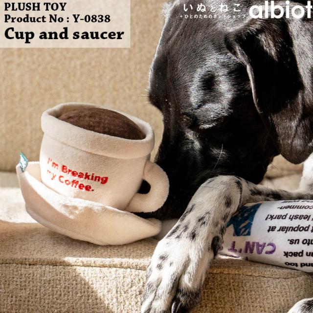 クラシックなカップアンドソーサーがモチーフ。"I'm Breaking my Coffee"と刺繍された文字は、「コーヒーブレイク」と「僕は今コーヒーを噛んで壊してるんだ」の二重の掛け言葉になっています。ソーサー部分はシャカシャカと音のなるPET入り。