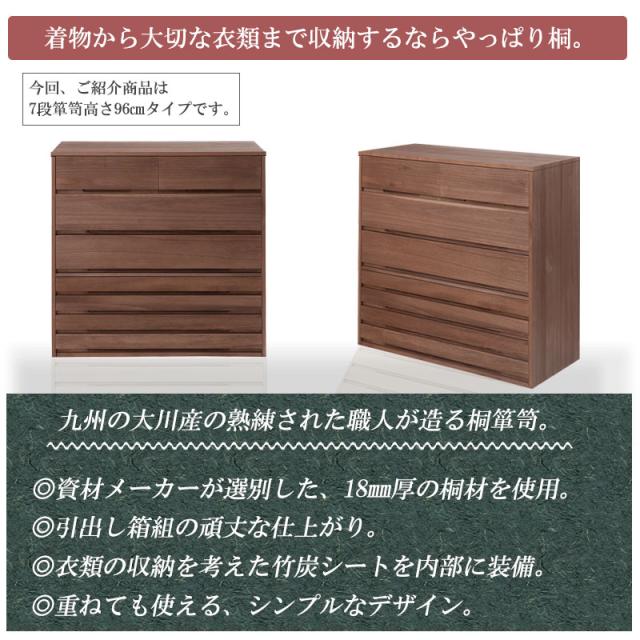 洋室にも合う 桐箪笥 7段 ナチュラル 【送料無料】 着物 収納 和風 インテリア ロータイプ 引き出し 日本製 完成品 おしゃれ