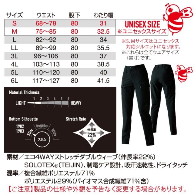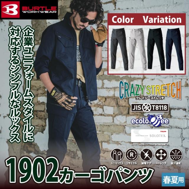 バートル BURTLE 作業服 作業着 作業ズボン 2025春夏新作 1902 カーゴパンツ 5L-6L おしゃれ JIS適合制電 ドライ