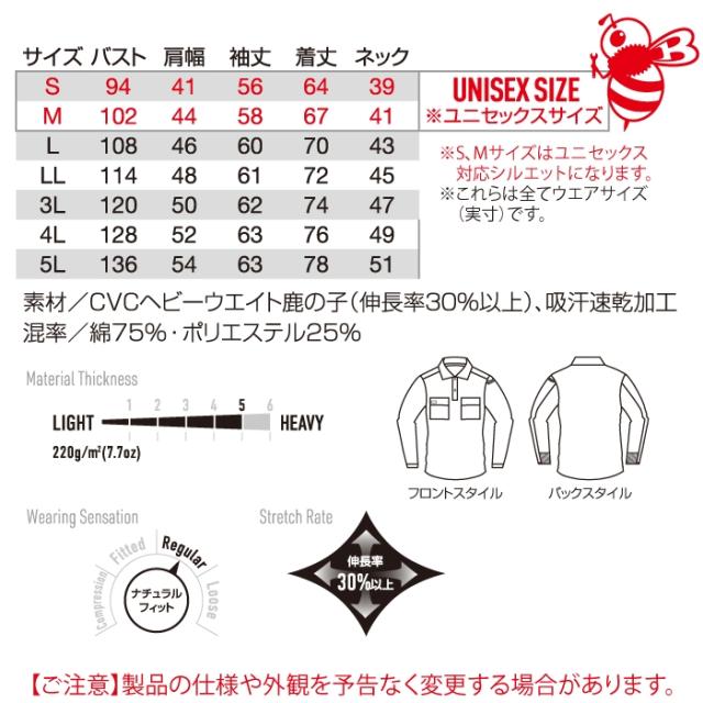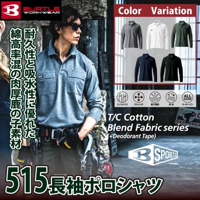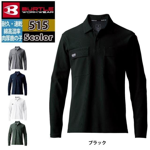 バートル BURTLE 作業服 作業着 インナー 2025春夏新作 515 長袖ポロシャツ 4L おしゃれ ドライ 消臭 シャツ