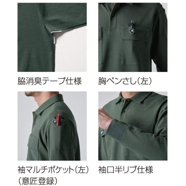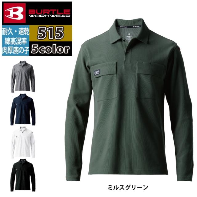 バートル BURTLE 作業服 作業着 インナー 2025春夏新作 515 長袖ポロシャツ 5L おしゃれ ドライ 消臭 シャツ