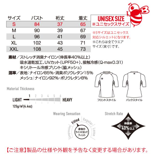 ◇素材:ストレッチ消臭ナイロン(伸長率40%以上)・吸水速乾加工・UVカット(UPF50+)・接触冷感(Q-max0.36)・キシリトール冷感プリント
