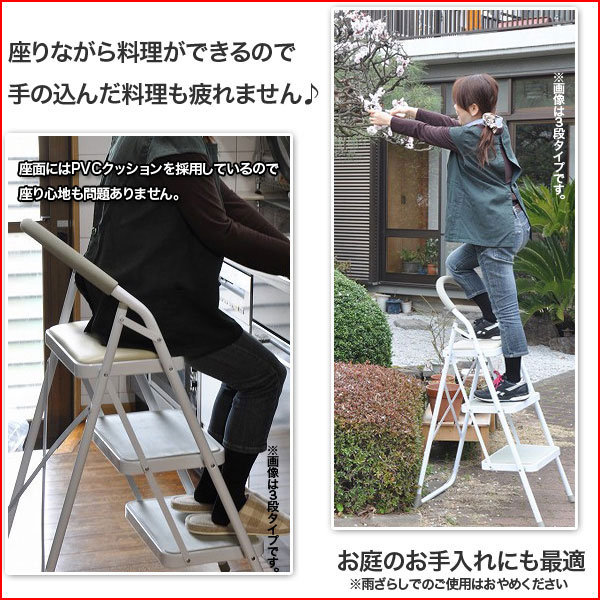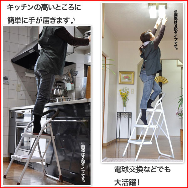 ・身体を支えながら昇り降りできるクッション付きの持ち手が付いているので、高い場所にも手が届き、棚の物を取る、掃除、洗車など、さまざまな場面でお使い頂けます。