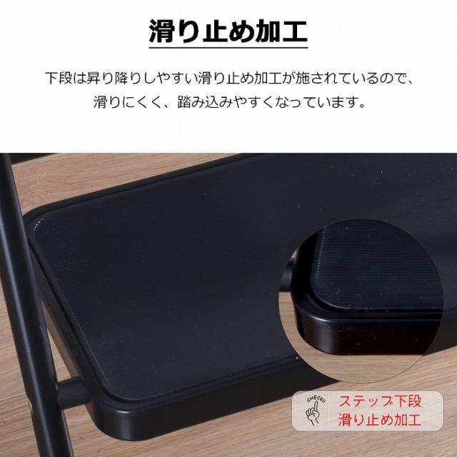・ブラック×ブラックスチール色のデザインがお部屋にシンプルになじむ2段タイプの踏み台です。