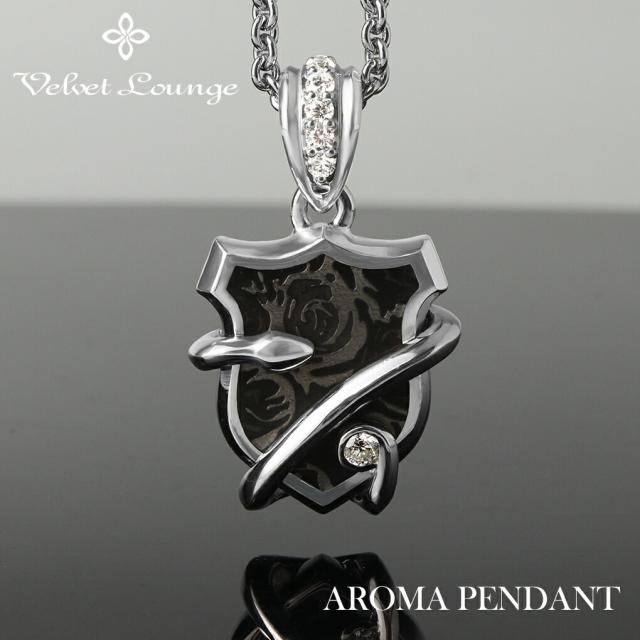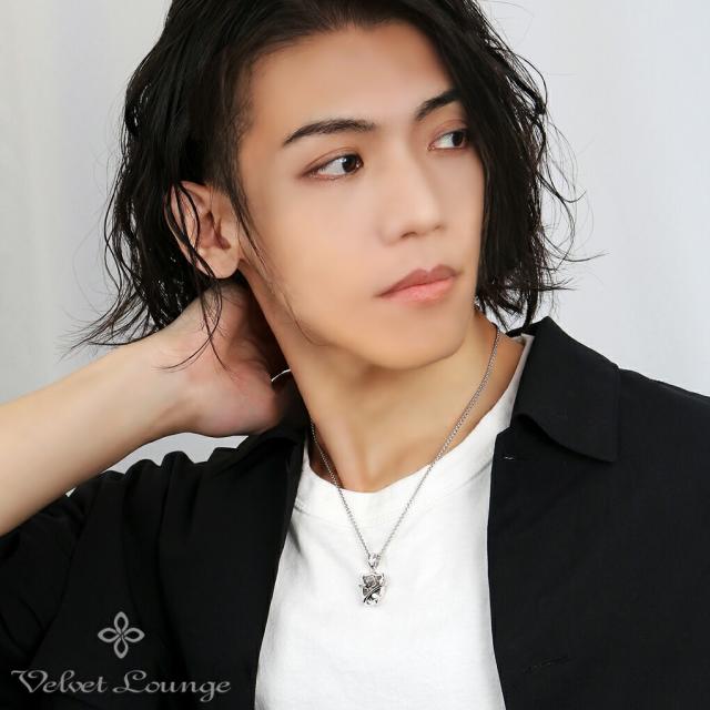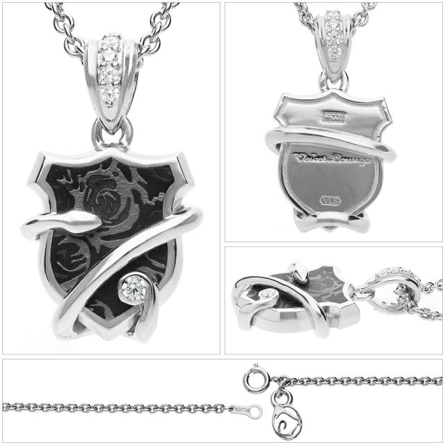 Velvet Lounge ヴェルヴェットラウンジ ブラック エンブレム スネーク ネックレス (チェーン付き) ペンダント メンズネックレス 蛇 黒 ローズ 薔薇