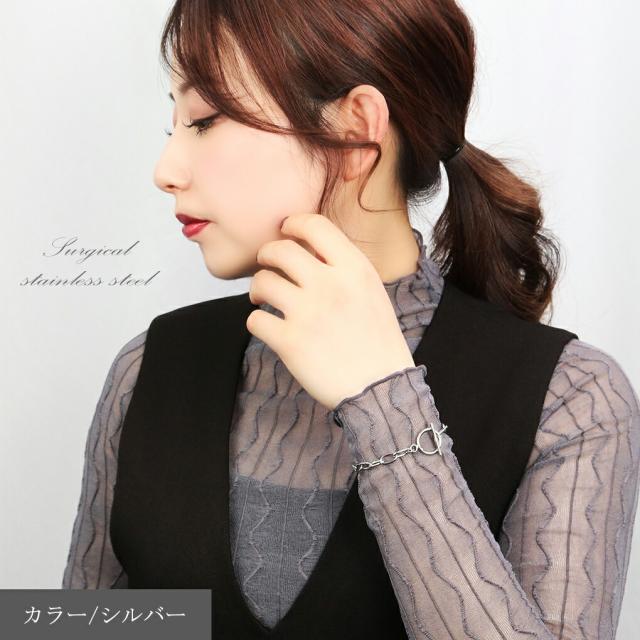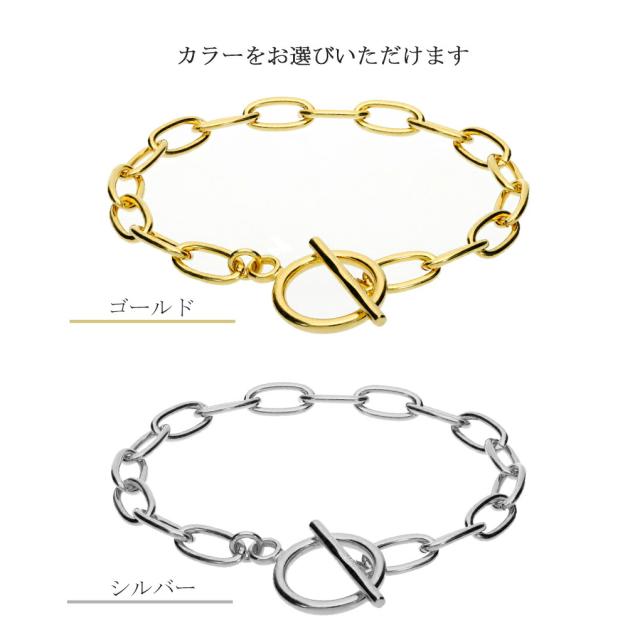 マンテルが留め具になったシンプルなチェーンブレスレット。