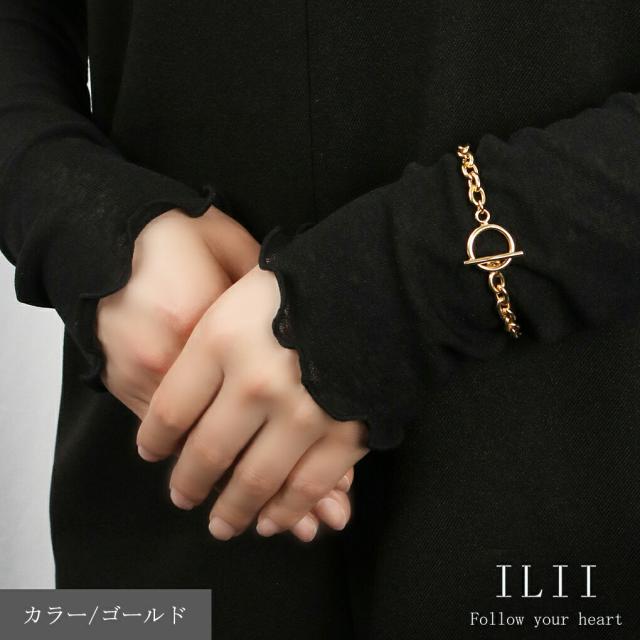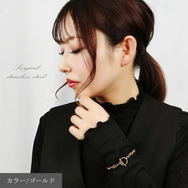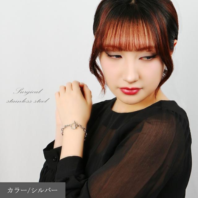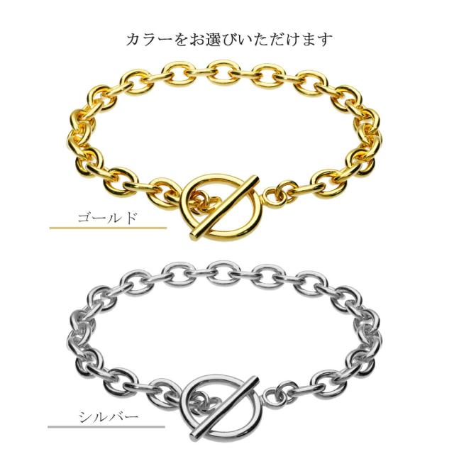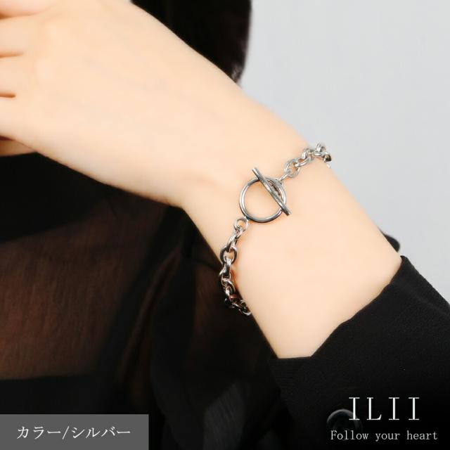 マンテルが留め具になったシンプルなチェーンブレスレット。