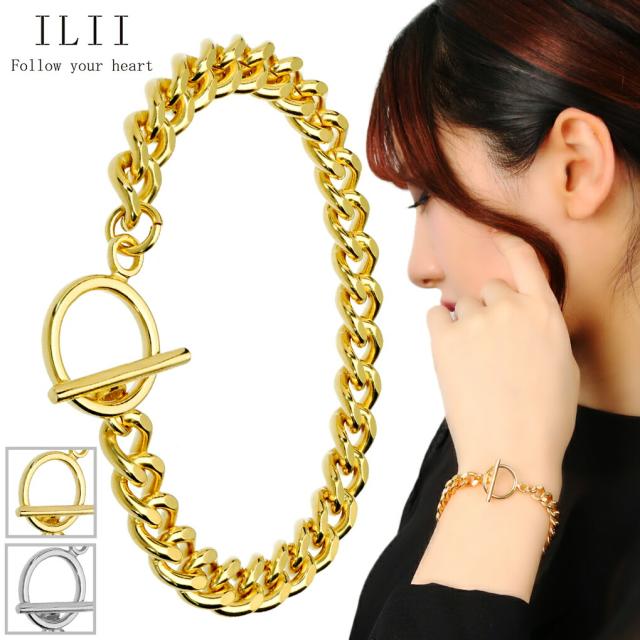 ILII マンテル ステンレス チェーン ブレスレット 喜平 幅7mm 18cm サージカルステンレス 金属アレルギーフリー 腕輪 シンプル マンテルブレスレット