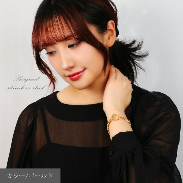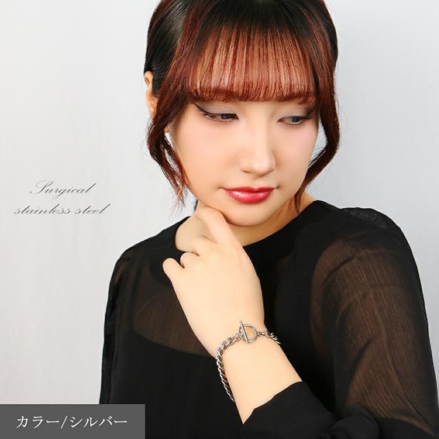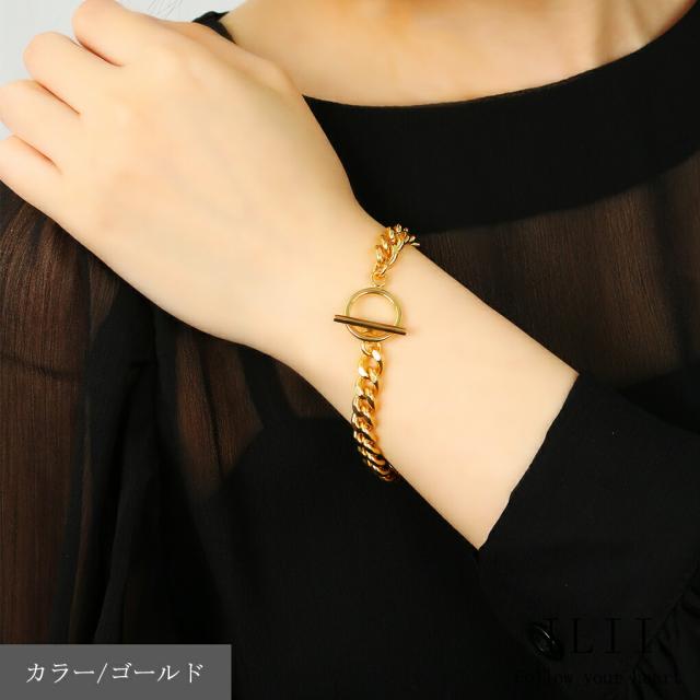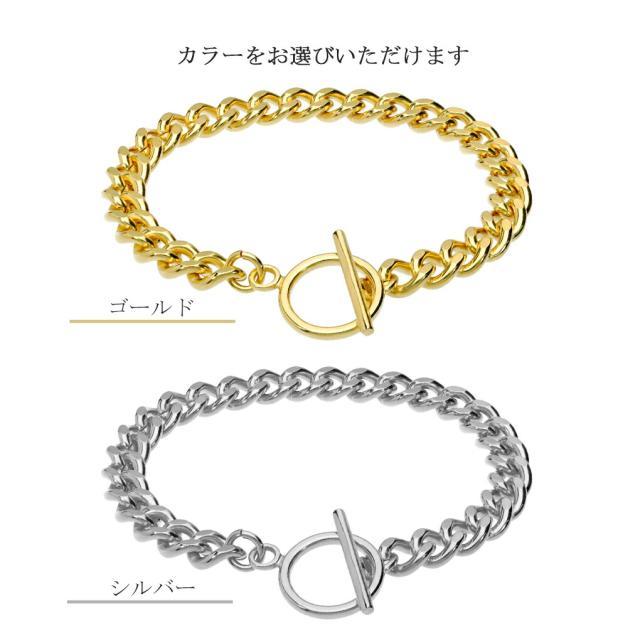 マンテルが留め具になったシンプルなチェーンブレスレット。