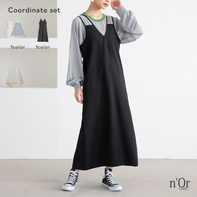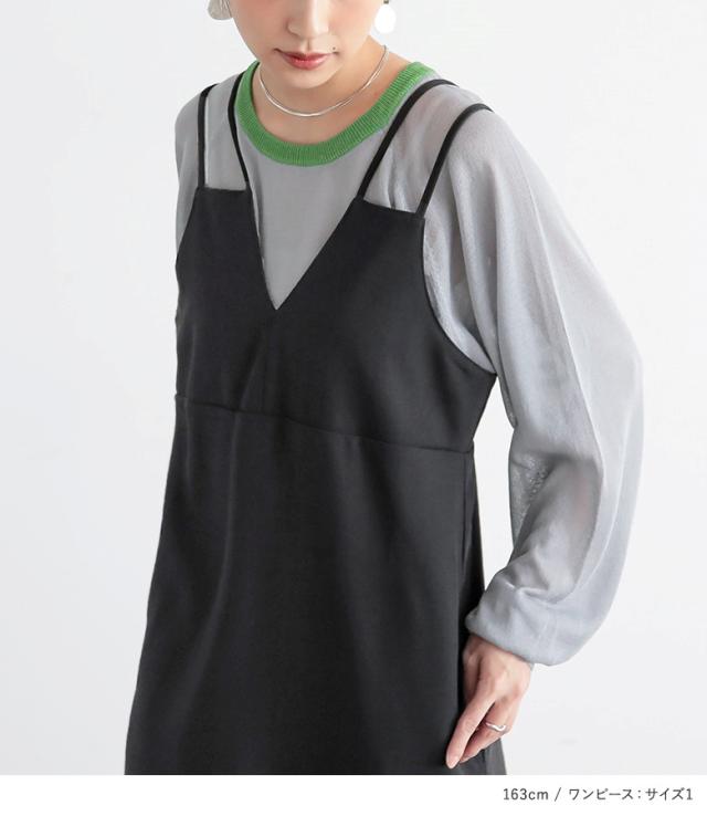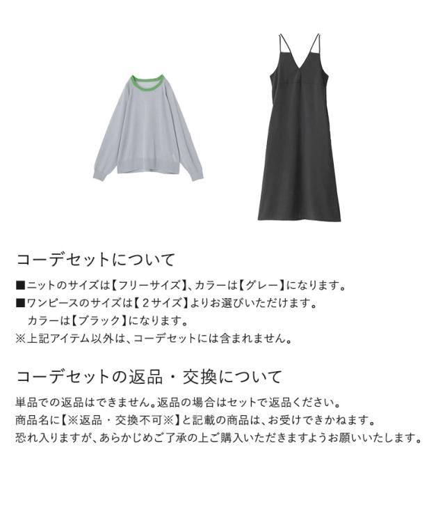23日最大1200円クーポン 『ダブルストラップキャミワンピース×ラグランシアー配色ニットコーデ2点SET』【メール便不可】【40】[2点コーデセット 2025 レディース ワンピース ドレス キャミソールワンピ ニット トップス 長袖 ラグラン]