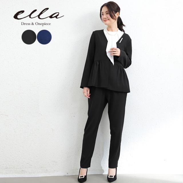 パンツドレス セットアップ レディース ドレス パンツスーツ スーツ ウエスト ゴム入り ペプラム デザイン 美脚 長袖 結婚式 謝恩会 発表会 かっこいい きれいめ 抜け感 大人 フォーマル ジャケット Vネック ノーカラージャケット オールシーズン パーティードレス 大きいサイズ エレガント 上品 パンツ ツータック ビジネス オフィス 二次会 演奏会 同窓会 イベント セレモニー 袖あり ブラック 黒 ネイビー 紺 20代 30代 40代 50代 M L XL 9号 11号 13号 ycpt28