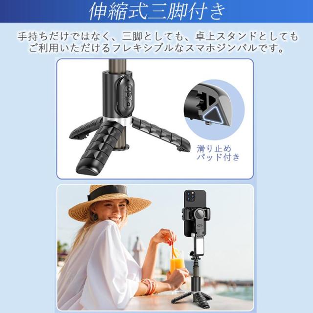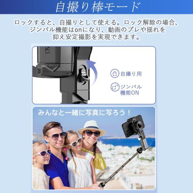 【キーワード】スマホジンバル 片手持ち 三軸スタビライザー 自撮り棒 スマホ 多機能 Bluetooth リモコン付き 自動回転 安定撮影 手ブレ防止 折畳み式 超軽量 iPhone Android対応 撮影録画 ライブ 三脚付き 雲台 手持ちジンバル コンパクト ローアングル撮影 旅行 アウトドア 延長ロッド内蔵 長時間駆動 観戦 運動会 動画 写真 vlog 撮影 片手持ち ジェスチャー操作 パノラマ ストーリーモード 映像 ビデオ スマートフォン用 折りたたみ式