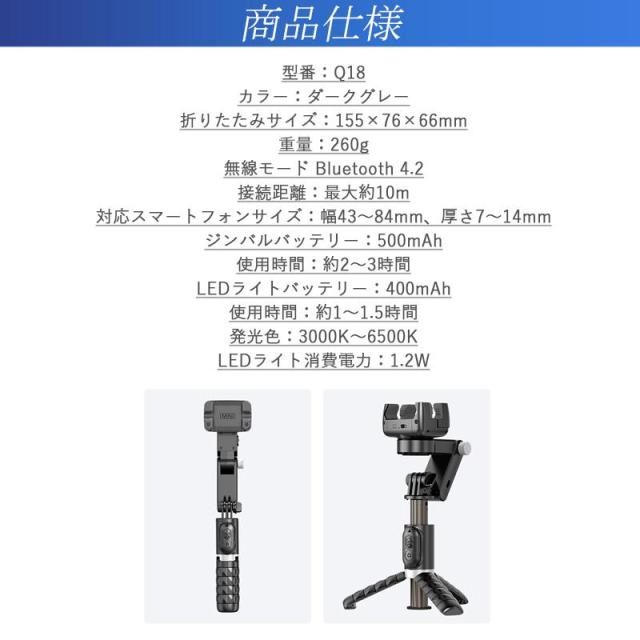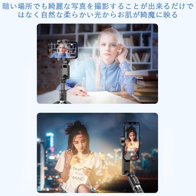 ジンバル スタビライザー LEDライト付き 顔トラッキング 3軸 手ブレ補正 スマホジンバル スマホ 三脚 自撮り棒 セルカ棒 リモコン付き 撮影