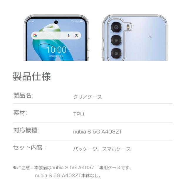 ZTE nubia S 5G スマホ保護ケース ヌビア エス ファイブジー A403ZT Y!mobile スマホケース ソフトケース 衝撃吸収 高透明感 疎油 撥水 耐摩擦 超薄型 軽量 滑り止め 柔らかい 高めエッジ設計 液晶保護 スクラッチ防止 高弾性 密着痕防止 脱着簡単 ストラップホール付き