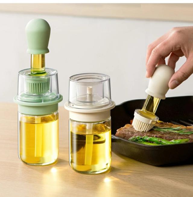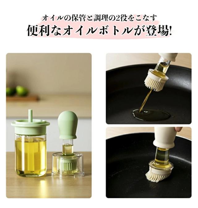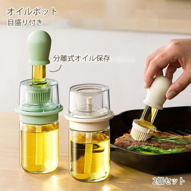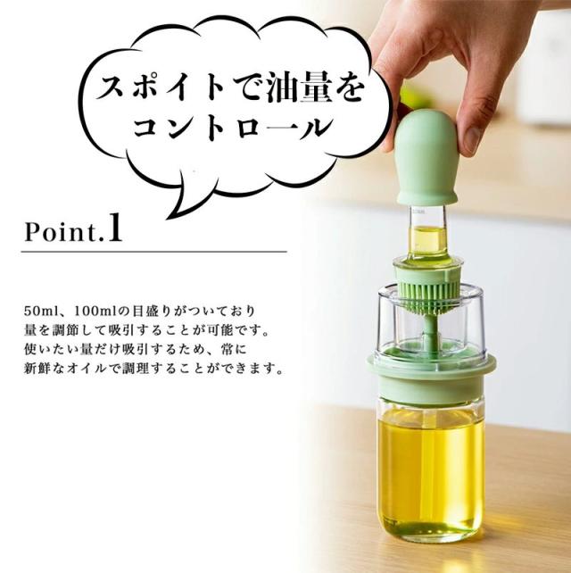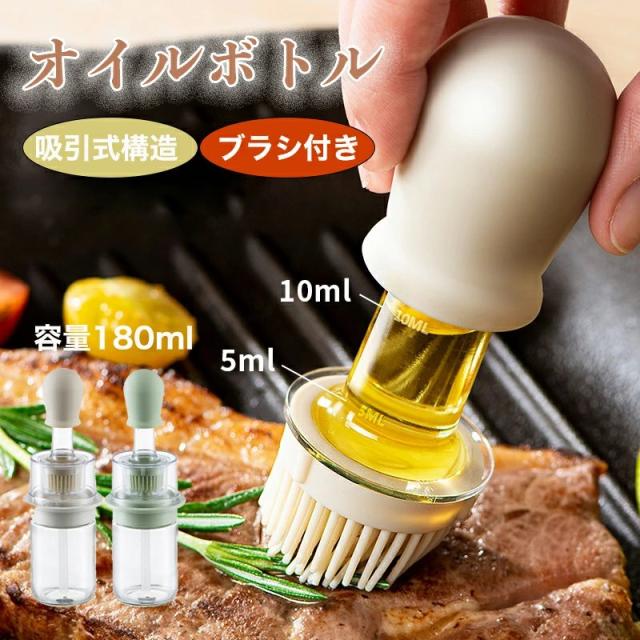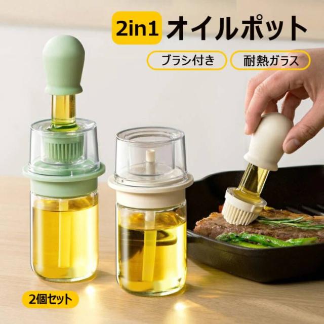 2個セット オイルポット2in1 吸引式オイルボトル ブラシ付き オイルスプレー 耐熱ガラス スポイト オイルブラシ 油引き オイル差し たこ焼き キッチンツール 料理用 醤油瓶