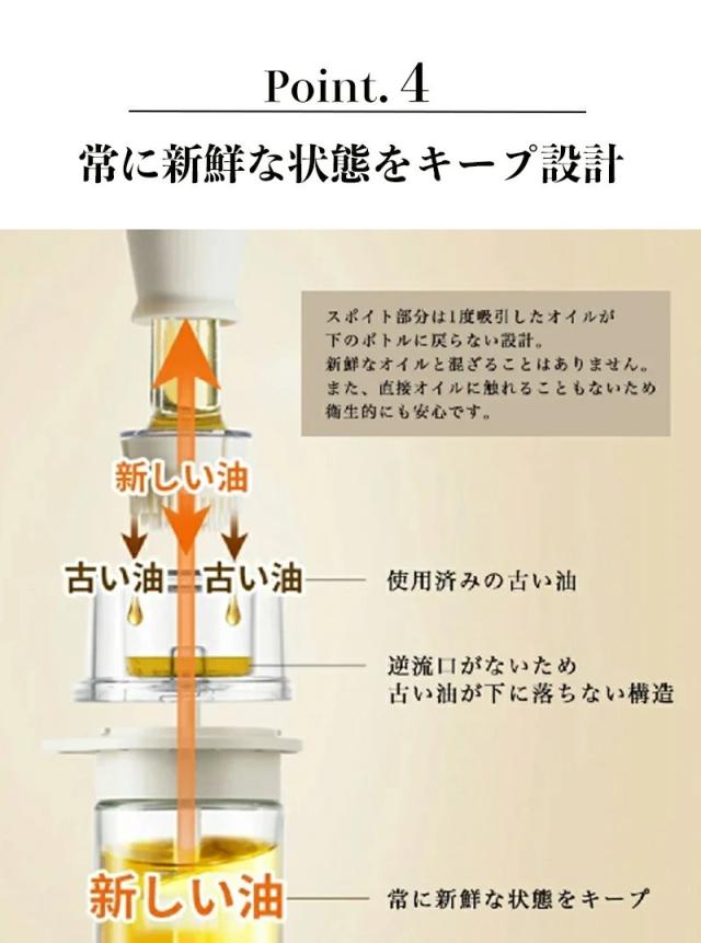 油出口はシリコン製で、アークデザイン、オイルの流れがスムーズになり、油が滴ったり垂れたりしない、キャップは逆流設計で、速い逆流は無駄になりません、ボトルが清潔に保たれていることを確認してください。ボトルは高級ボロシリケートガラスでできており、ほこりや湿気を効果的に防ぎ、より健康的に使用。キッチン用のオイルボトルはキャップ式の蓋が付き、調味料の品質を維持して、ほこりや虫などの侵入を防ぎ風味を損なわない。