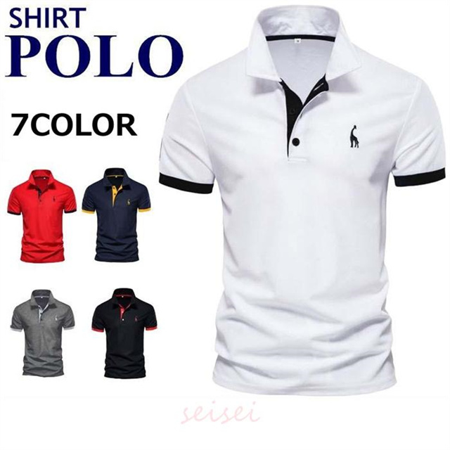 ポロシャツ 半袖 ゴルフ 鹿 メンズ ゴルフシャツ 切り替え Shirt ゴルフウェア スポーツウェア 無地 綿 大きいサイズ シンプル おしゃれ 送料無料 新作 夏物