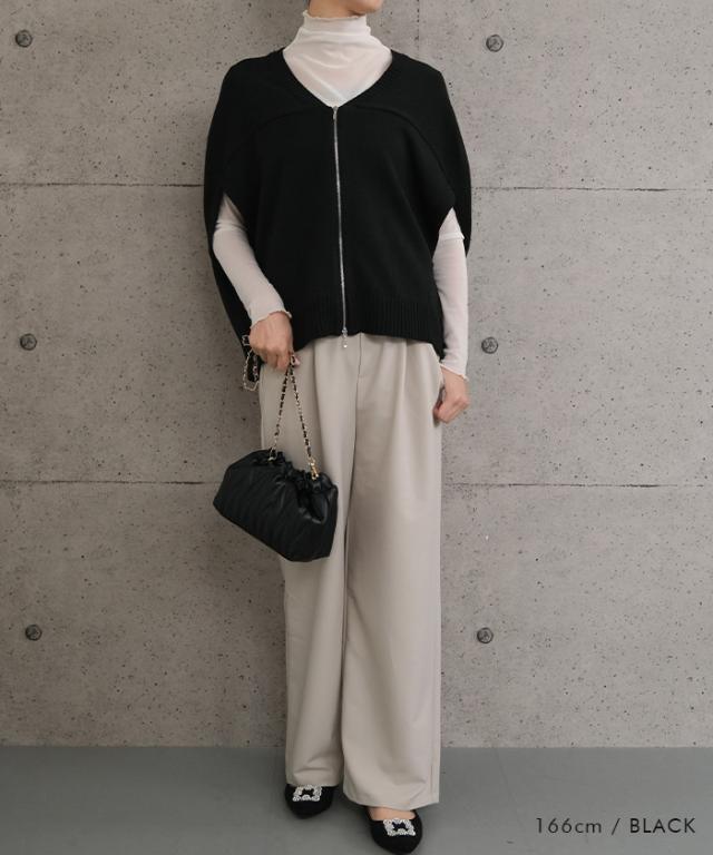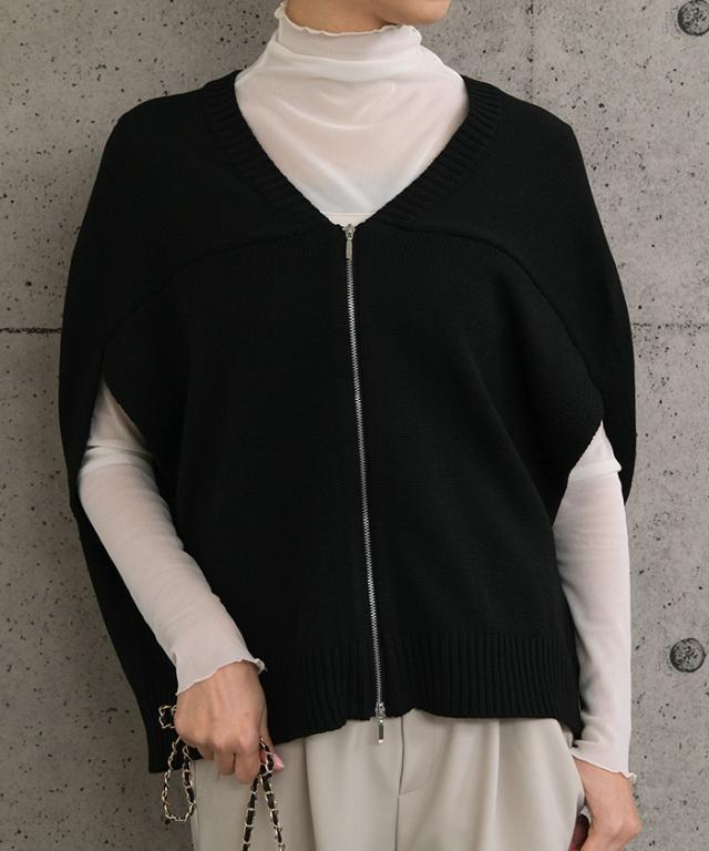 レイヤードで楽しむ、ダブルジップコクーンニットベスト