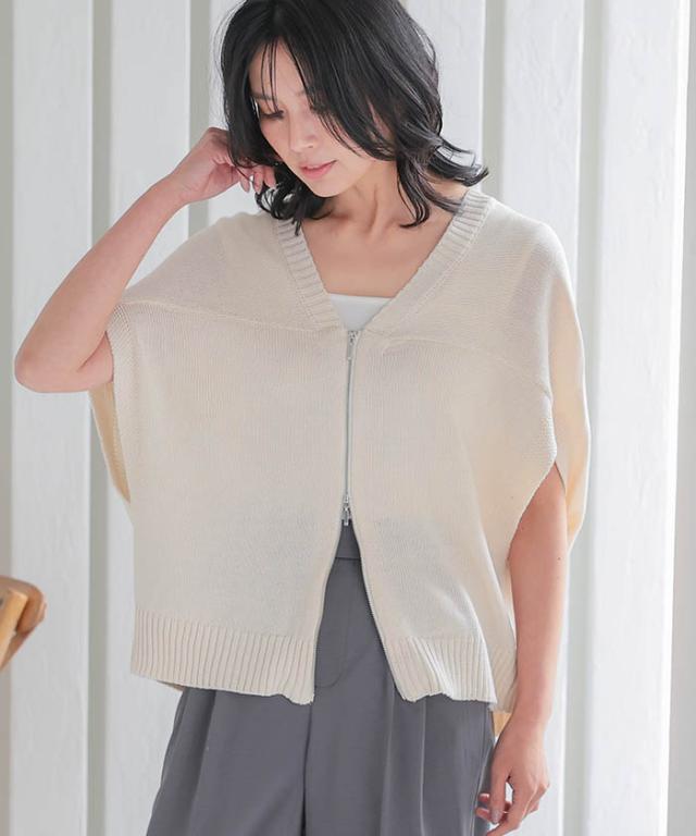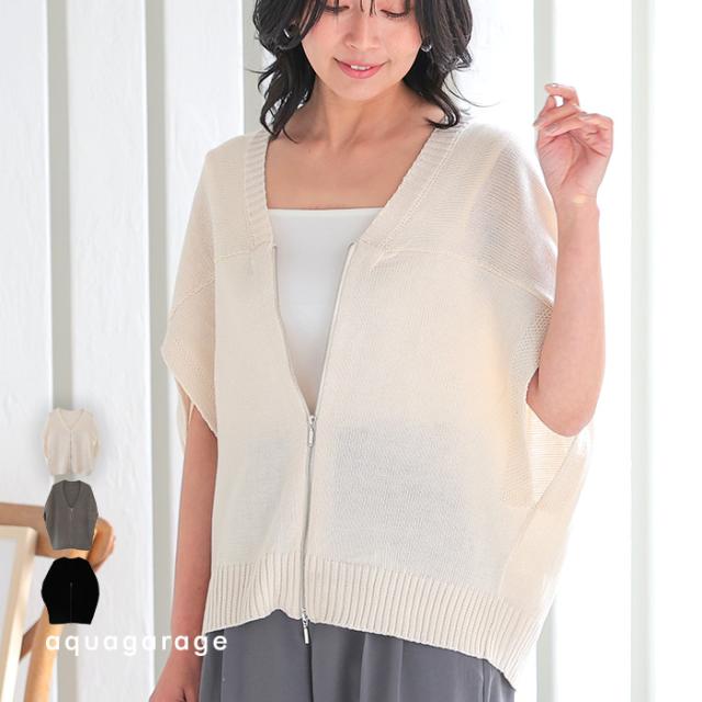 ダブルジップコクーンニットベスト 春 夏 秋 アクアガレージ aquagarage