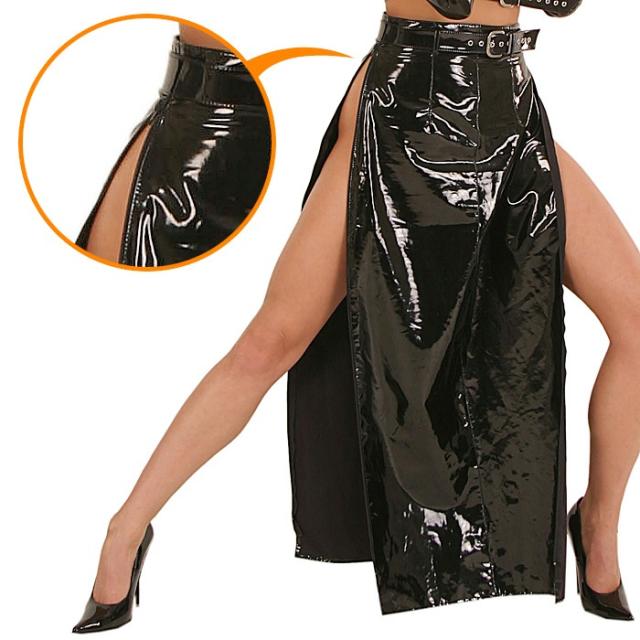 エナメルロングスカート 両サイドロングジッパー付き 2WAY マーメイドスカート スリットスカートウエストベルト付き★LD-1355◆取り寄せ