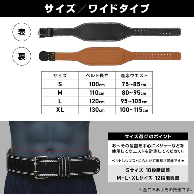 筋力トレーニング時に体幹部分をサポートする「トレーニングベルト ワイドタイプ」です。