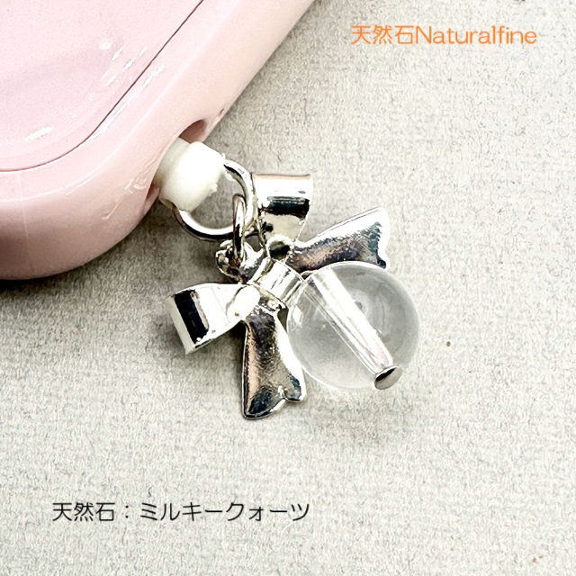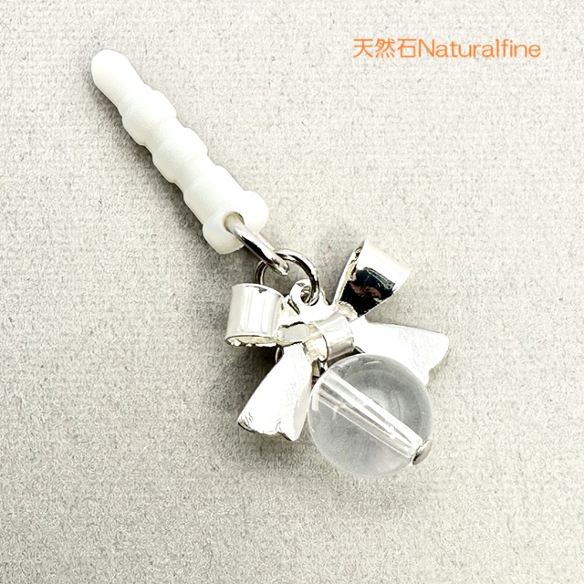 イヤホンジャック アンドロイド iPhone 水晶 天然石 ストラップ パワーストーン ミルキークォーツ 旅のお守り リボン