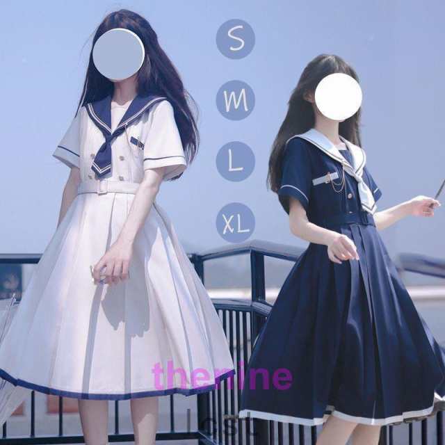 ワンピース チュニック ひざ丈 半袖 レトロ レトロ感 セーラー服風 森ガール セーラー服 女子高生 制服 セーラー襟付ワンピース 春 秋 マリン風 ひざ上丈