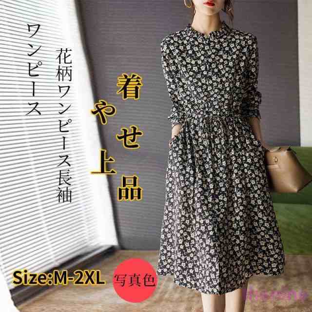 ワンピース きれいめ 花柄ワンピース50代 着やせ 上品 大きいサイズ トールサイズあり 膝丈 長袖 春夏秋冬