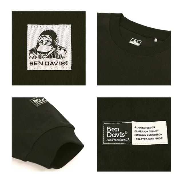 BEN DAVIS ロンT ベンデイビス 長袖 Tシャツ メンズ ワイドシルエット ワンポイント ロゴ ストリート ブランド 定番 人気 おしゃれ 7オンス ゴリラ クルーネック
