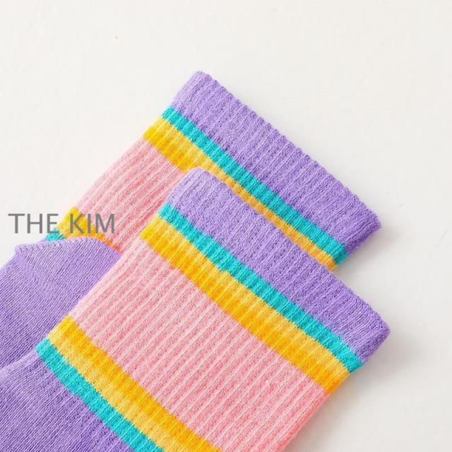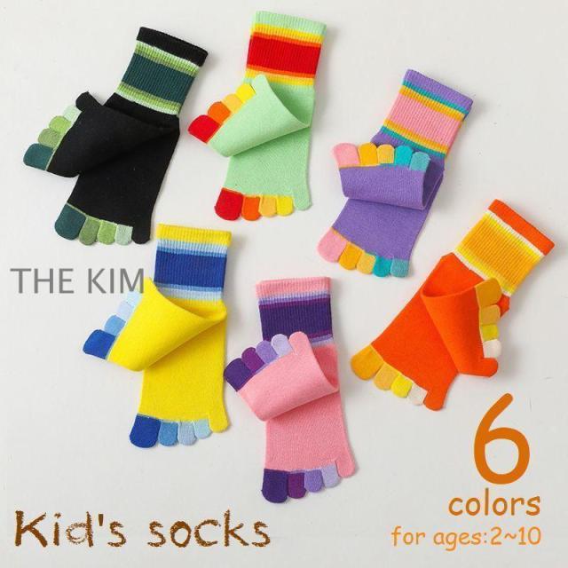子供用 5本指ソックス キッズ ジュニア クルーソックス 五本指靴下 3足セットカラーブロック 女の子 男の子 足ムレ対策 マルチボーダー 可愛い