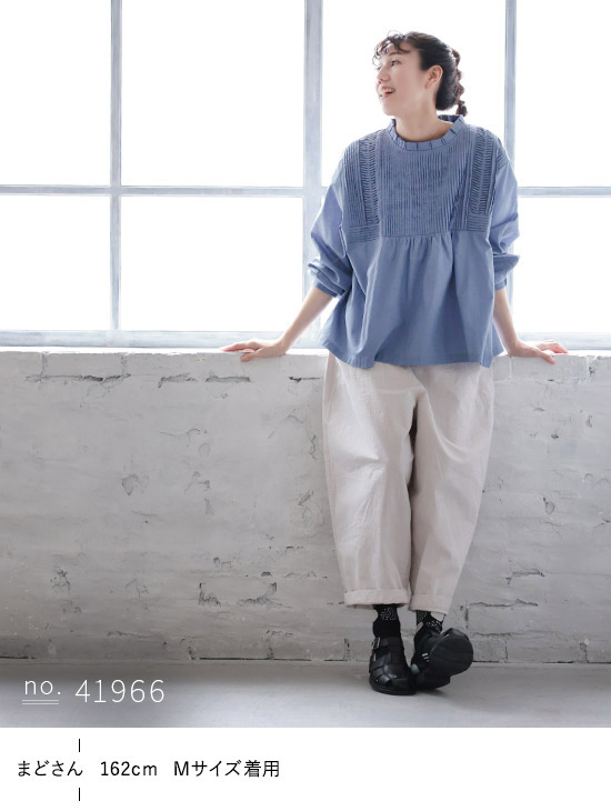 はちみつ堂 みずいろ屋根のブラウス レディース プルオーバー 長袖 コットン 綿 ピンタック トップス