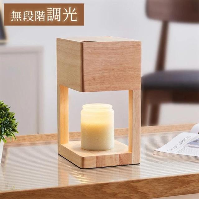 キャンドルウォーマー ランプ 木製 間接照明 照明 無段階調光 電球2個付き 卓上 和風 アロマキャンドルウォーマー キャンドルウォーマー ナイトライト おしゃれ