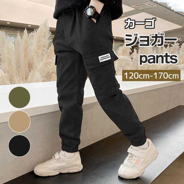 【スリムカーゴパンツ】カーゴパンツ ボトムス 長ズボン スリム パンツ ズボン キッズ 男の子 女の子 ベージュ ブラック カーキ 無地 おしゃれ ロングパンツ