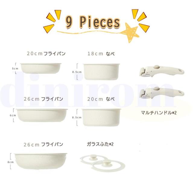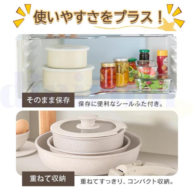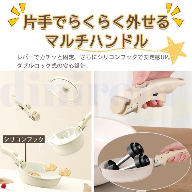 フライパン セット IH・ガス火対応 焦げ付かない 取っ手が外し可能 セラミックコーティング 炒め鍋 片手鍋 体に害のない 食器洗浄機対応