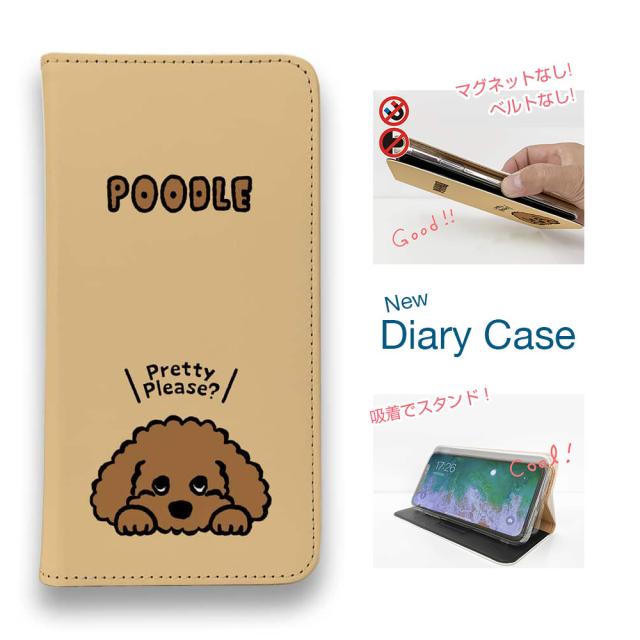 スマホケース 手帳型 ベルトなし マグネットなし iPhone17 Pro Max iPhone Air iPhone16e Pro Max 16 Plus 15 Pro Max 14 Plus Xperia 10 VII Galaxy AQUOS Pixel10 Pro XL 犬 雑貨 プードルのおねだり顔(wakat)