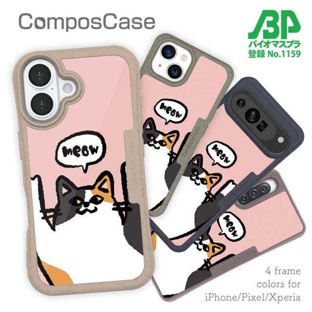 コンポスケース & 着せ替え デザインシート セット Google Pixel9a Pixel9 Pro XL Pixel8a Pixel8 Pro Xperia 10 V ケース 背面 生分解性 4色 猫 ネコ ワーイなネコ_三毛猫(wakat)