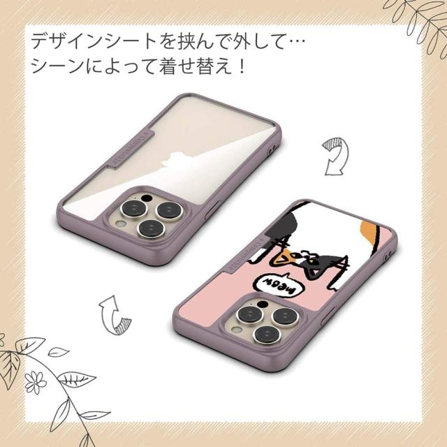 | ケースについて | 背面の内側に入れ込むデザインシートで、シーンに合わせて着せ替え可能。また、グリップしやすいクッション構造で、本体重量は約35gと軽減化を実現。さらにSライン形状で、究極に押しやすいボタン設計(切り込みが入ることで押し込む力を軽減)、背面のカメラ・レンズを保護する高さ設計となっております。生分解性プラスチック素材ながらも着脱もしやすく、割れない・指紋防止加工を施しています。 |