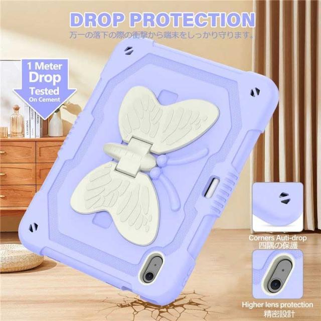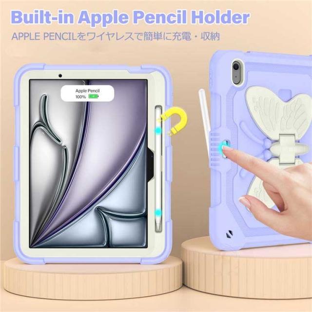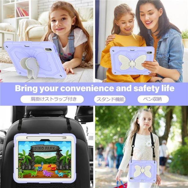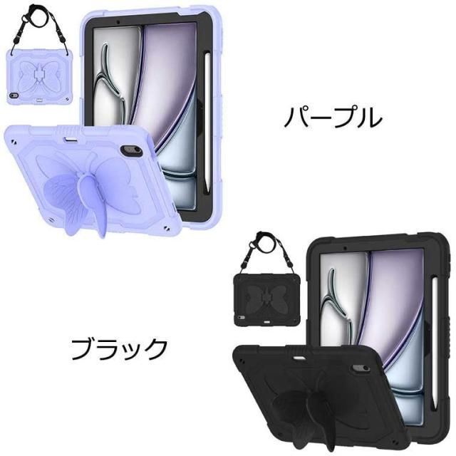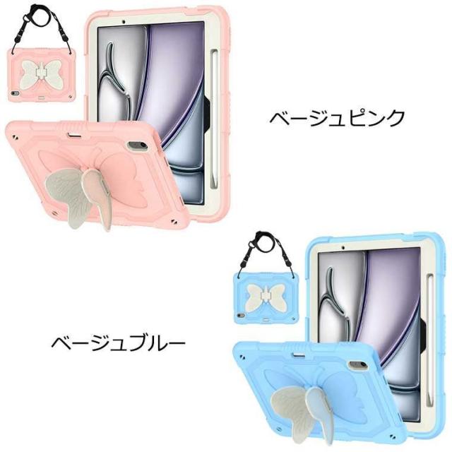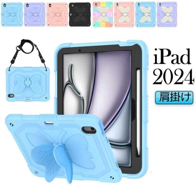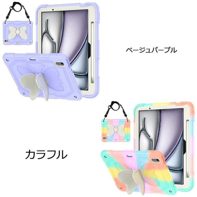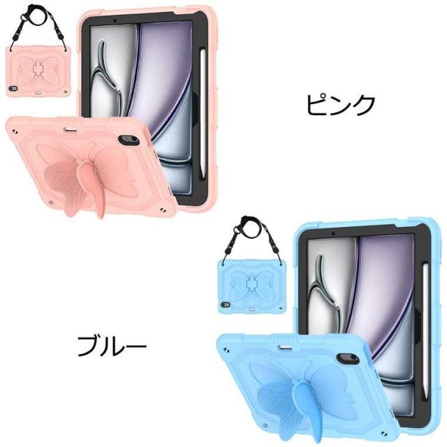 ipad a16 ケース 蝶柄 ショルダーストラップ付き ipad第10世代ケース 耐衝撃 ipad mini a17pro mini7 mini6 ipad air 11インチ ケース (m2/m3) ipad a16 カバー 2025 ipad第10世代ケース 10.9 ペンシル収納付 傷防止 ショルダー付き スタンド機能付き