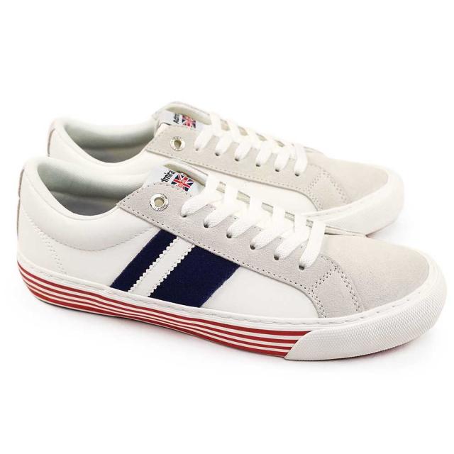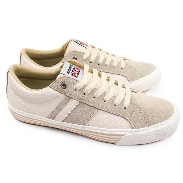 質感の良いコンビ素材、ライン入りのフォンシングテープがビンテージ調の独特な風合いを醸し出すスニーカー。リアルなシボ感が目を惹く上質なシンセティックレザーアッパー、余計な装飾を極力省いたアドミラルらしいシンプルなデザイン、落ちついたカラーリングでコーディネートに取り入れやすく、トレンド問わず履くことができる一足。レトロなディティールがさりげなくこだわりを感じさせる一足。