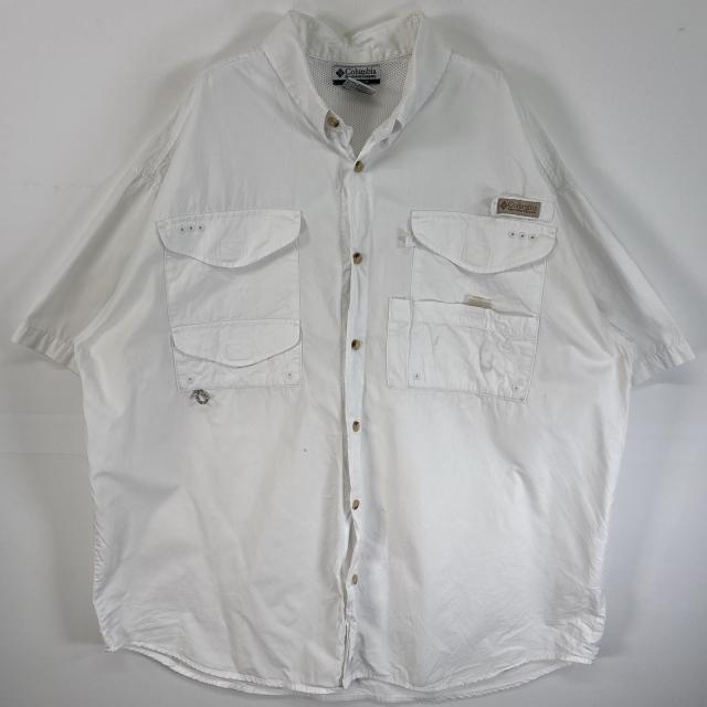 古着 コロンビア Columbia 半袖シャツ PFG フィッシングギア ワンポイント ロゴ XL ホワイト 無地 メンズ