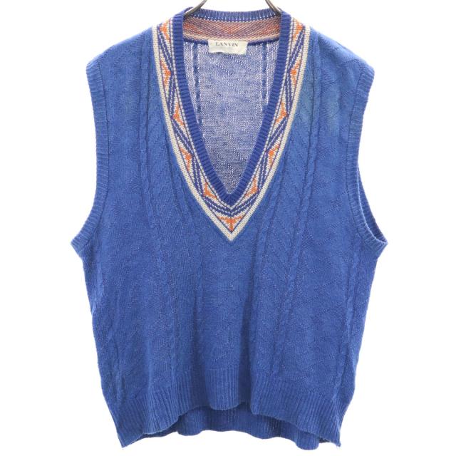ランバンスタジオ ノースリーブ Vネック ニットベスト 50 ブルー LANVIN STUDIO メンズ