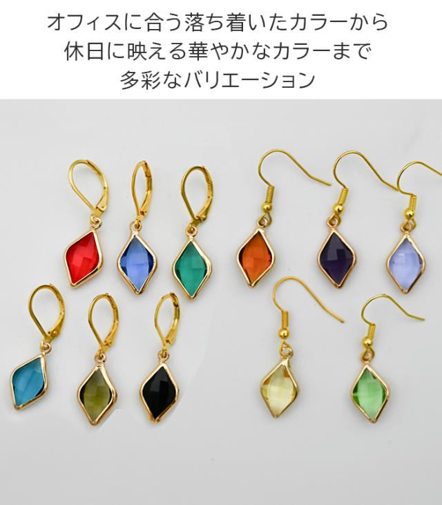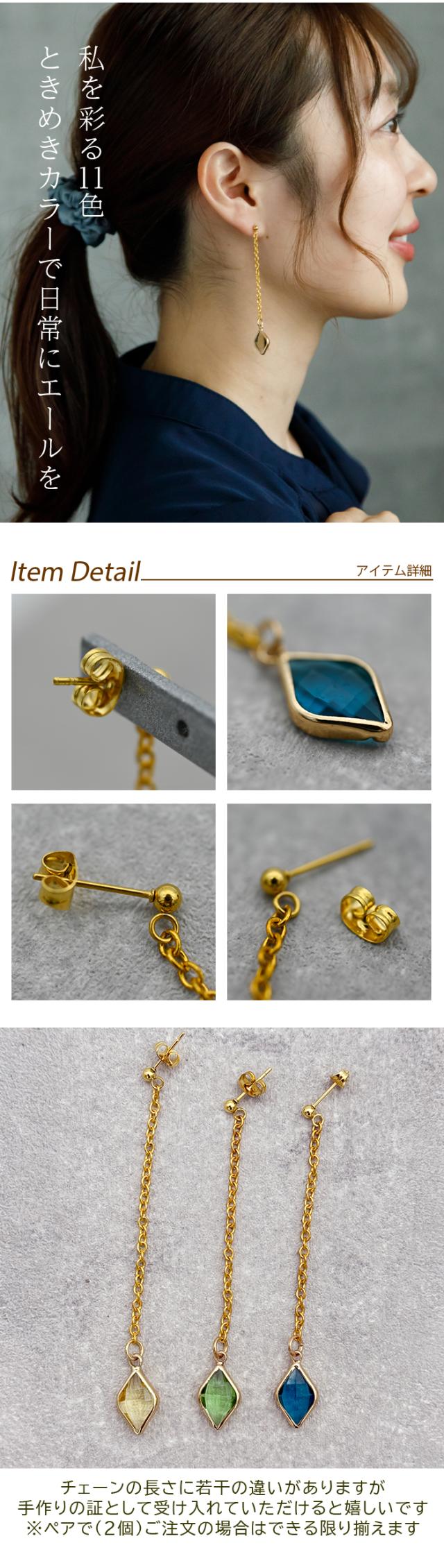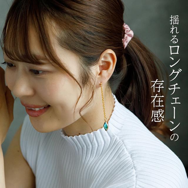 揺れるチェーンの先に光るダイヤ型カラフルストーン ロング ピアス 金属アレルギー対応 ステンレス製 おしゃれ 大人女子