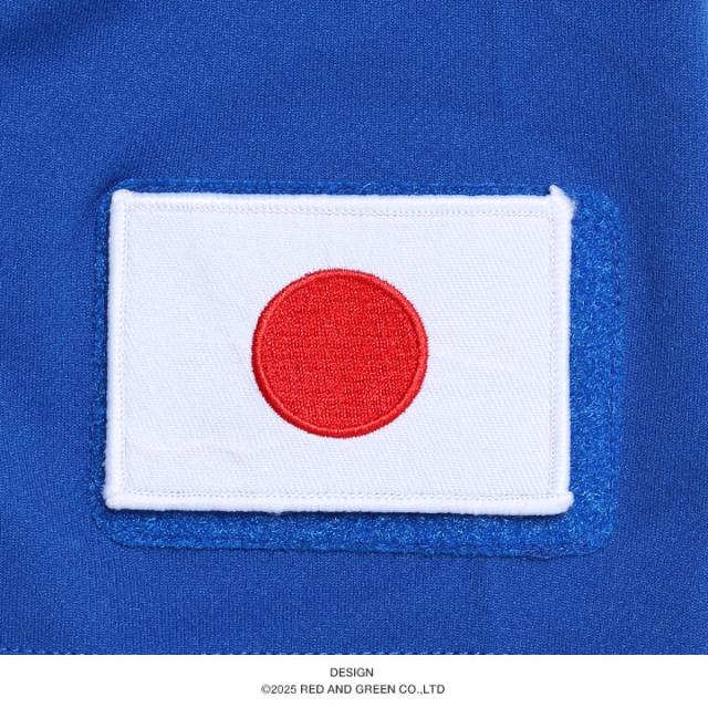 当店で販売中の日章旗のワッペン(たて5cm×よこ7cm)をとりつけるとこのような感じになります。