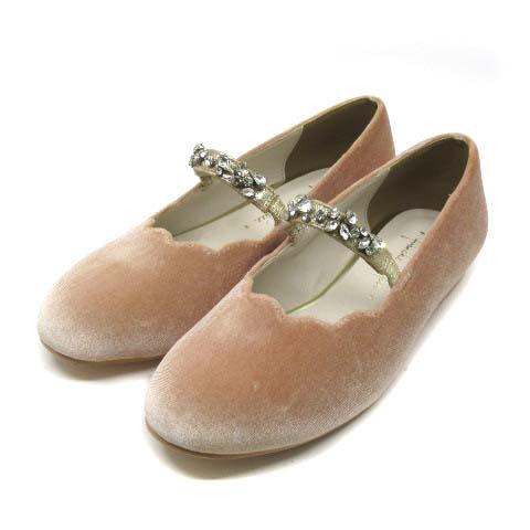 【中古】未使用品 フランシュリッペ franche lippee ベロア ビジュー ストラップ パンプス フラットシューズ ピンクベージュ系 S 23.5cm
