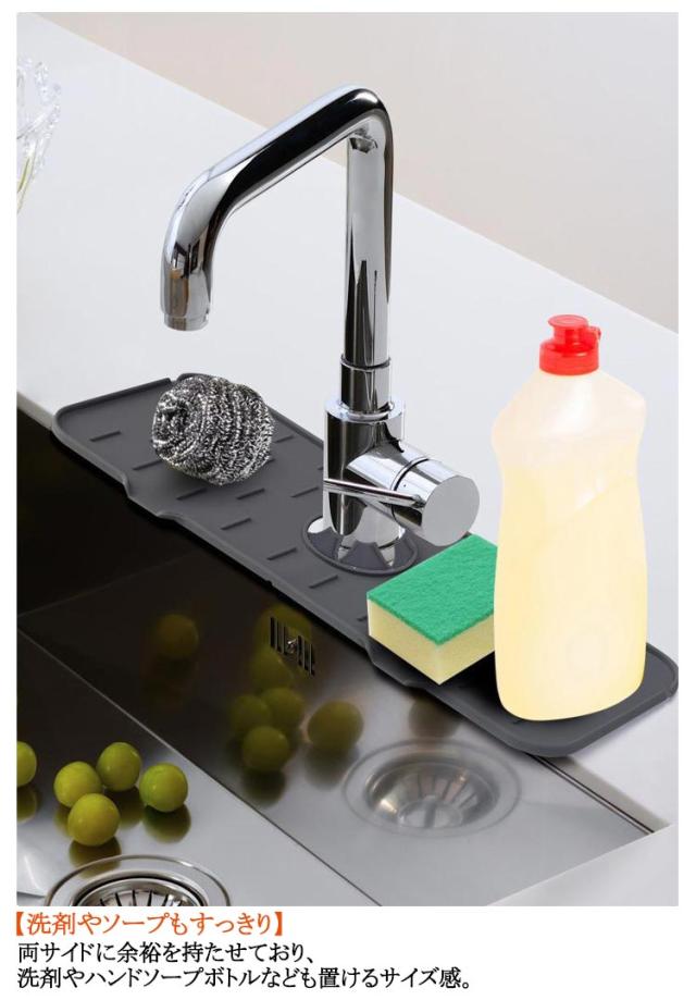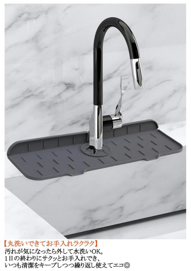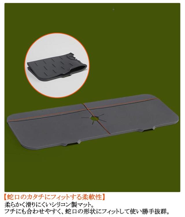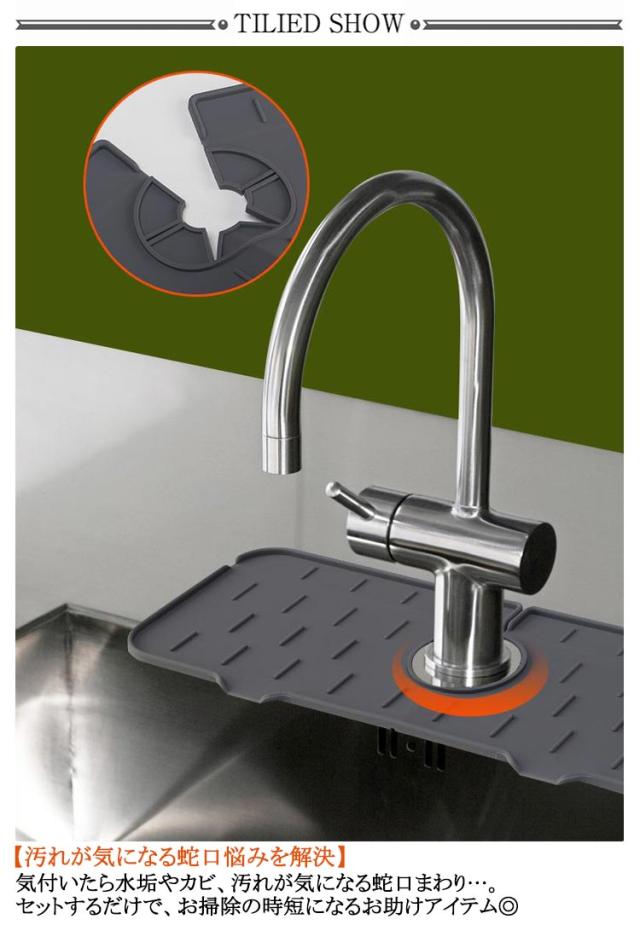 | ・蛇口まわりの面倒なお掃除がラクに!「シリコン水切り蛇口マット」 2個セットが新登場。 【汚れが気になる蛇口悩みを解決】 ・気付いたら水垢やカビ、汚れが気になる蛇口まわり…。セットするだけで、お掃除の時短になるお助けアイテム◎ 【蛇口のカタチにフィットする柔軟性】 ・柔らかく滑りにくいシリコン製マット。フチにも合わせやすく、蛇口の形状にフィットして使い勝手抜群。 【水がシンクに流れる排水設計】 ・水の飛び散りや水溜まりを防止し、水がシンクへと自然に流れるつくり。 【洗剤やソープもすっきり】 ・両サイドに余裕を持たせており、洗剤やハンドソープボトルなども置けるサイズ感。 【丸洗いできてお手入れラクラク】 ・汚れが気になったら外して水洗いOK。1日の終わりにサクッとお手入れでき、いつも清潔をキープしつつ繰り返し使えてエコ◎ 【使い方を選べてとっても便利】 ・台所の蛇口だけでなく、洗面に使うも良し。コップなどちょっとした洗い物を乾かす、水切りマットとしても活躍。 | |