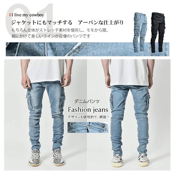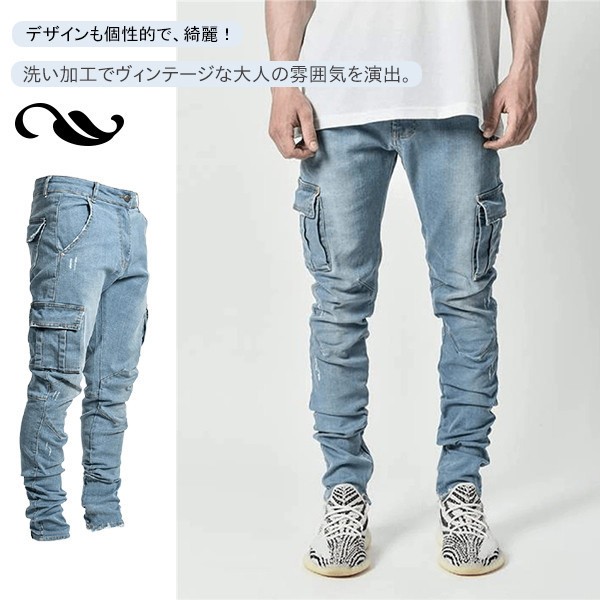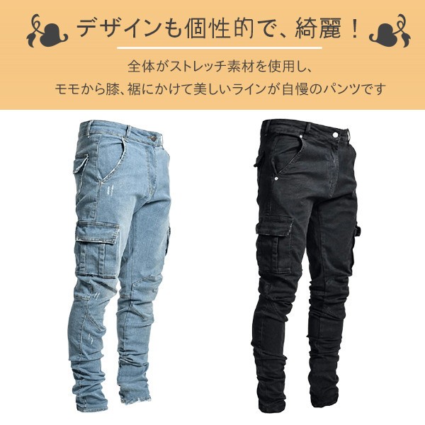 【ポイント5倍!】デニムパンツ メンズ スキニーデニム ジーパン ジーンズ カーゴパンツ 作業着 パンツ ワークデニム ジョガーパンツ テーパード 秋