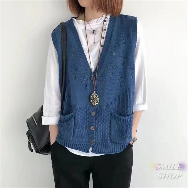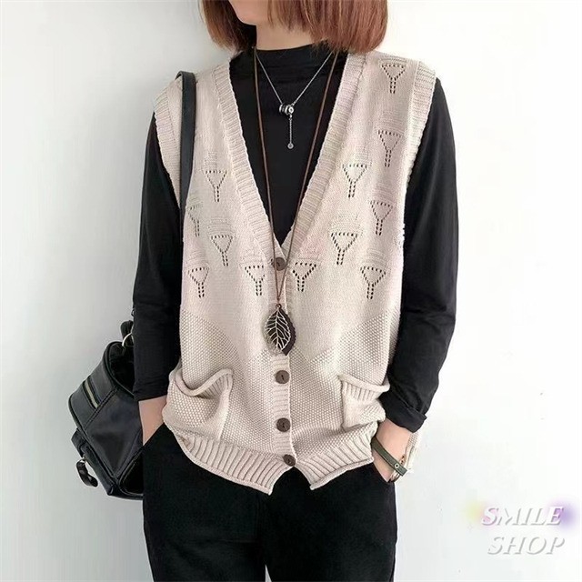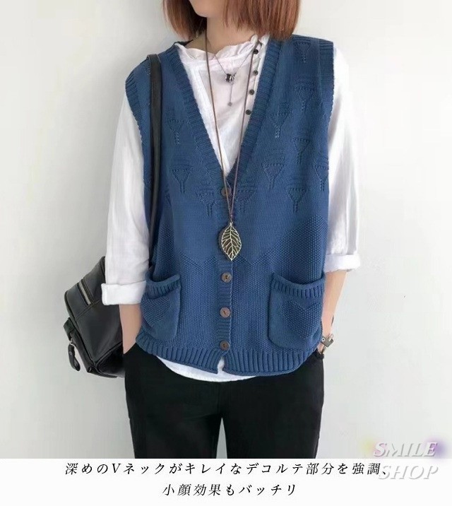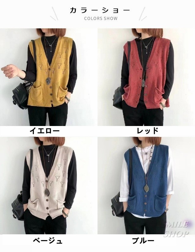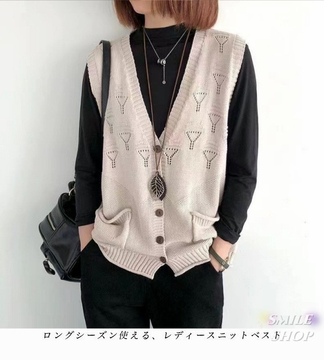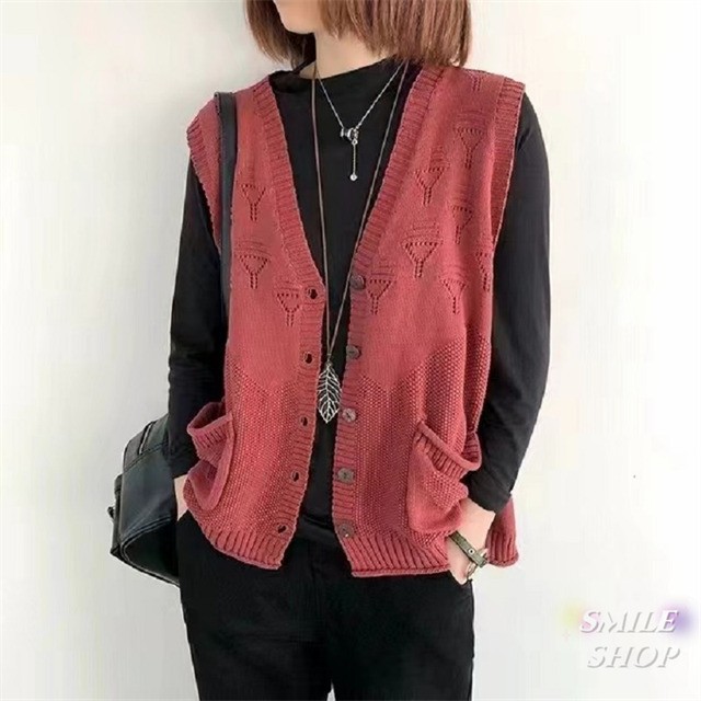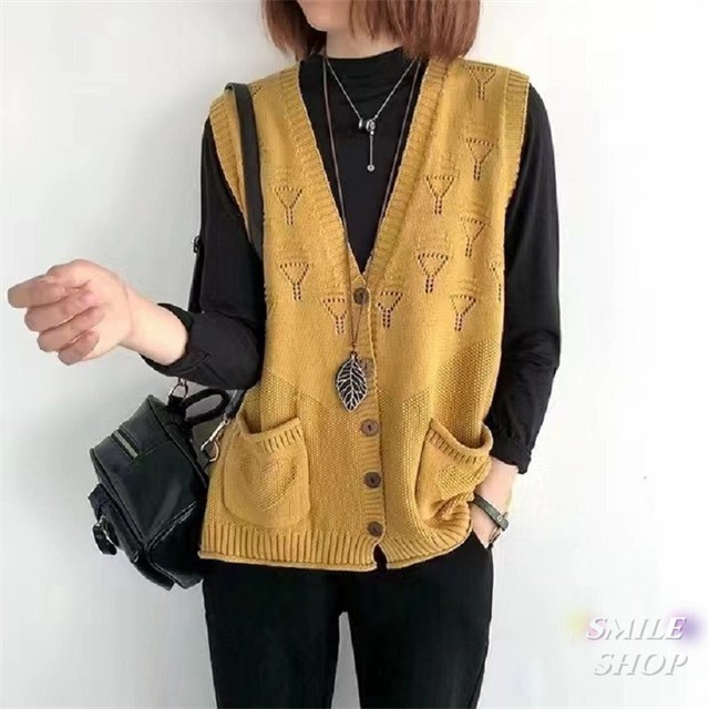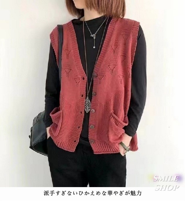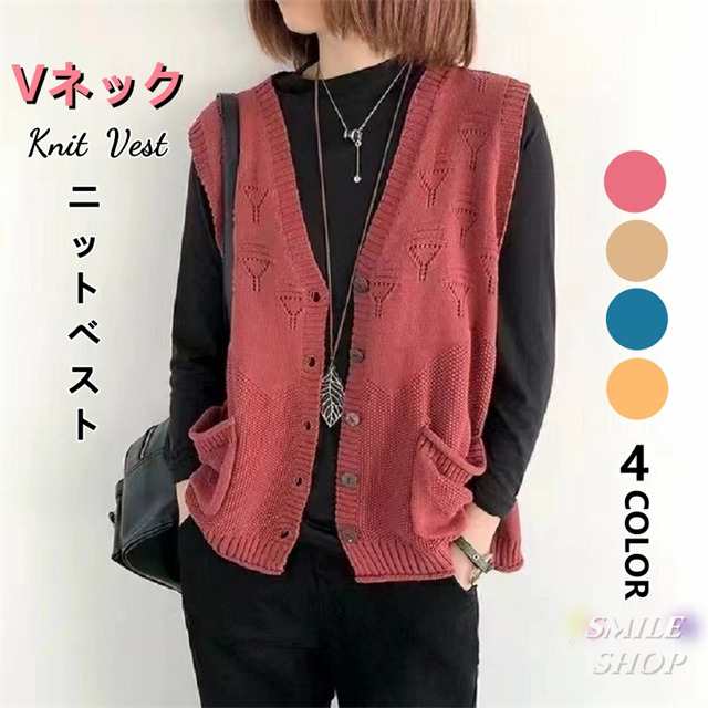 【ポイント5倍!】ベスト ニットベスト レディース Vネック ベスト ニットジレ 前開き ゆったり おしゃれ レトロ 秋 トップス 着回し ノースリーブ